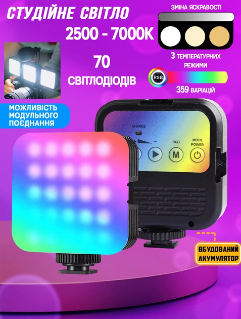 Студійне світло квадратне WOW WLR1-RGB різнокольорове селфі підсвічування для блогера