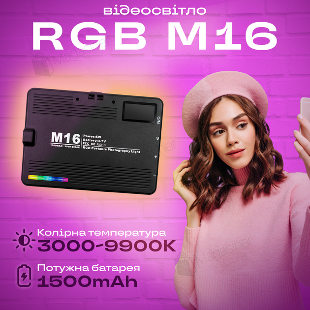 Акумуляторне відеосвітло RGB M16 портативне з режимами світіння (2910)