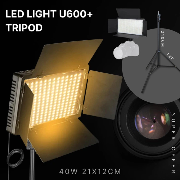 Відеосвітло VARICOLOR PRO Led U600+ 21х12см 40Вт 3200-6500K та посилений штатив 210см Освітлювач Прожектор Лампа для зйомки