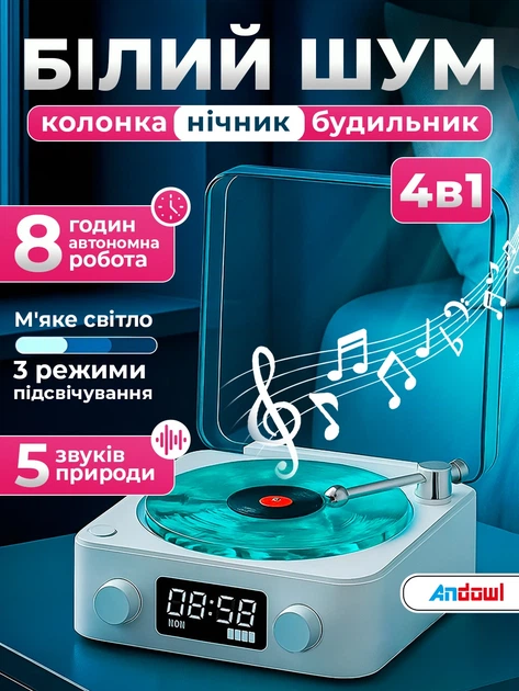 Генератор білого шуму 4в1 звуки природи bluetooth колонка атмосферний нічник годинник з будильником Andowl Q-YX05X1 портатив
