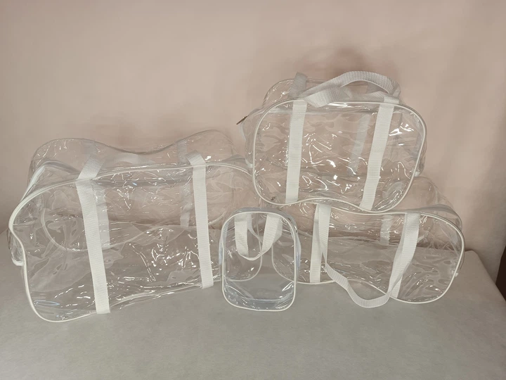 Набір прозорих сумок EcoNova Light у пологовий будинок 3+1 білий (S, M, XXL + Косметичка) | Дорожній органайзер для мами та