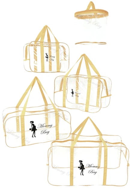 Набір 4+1 прозора сумка в пологовий будинок Mommy Bag S, M, L, XL білий + подарунок - органайзер (w007)