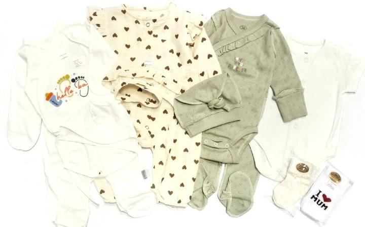 Комплект одягу 6в1 в пологовий для дівчинки на 56 см Молочний/Біжевий
