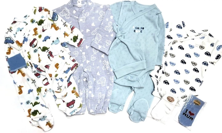 Комплект одягу на байці 5в1 в пологовий для хлопчика на 56 см Синій/Сірий