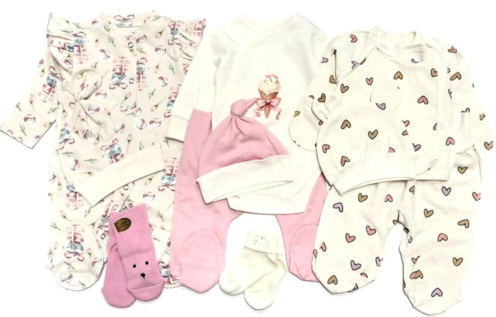 Комплект одягу на байці 5в1 в пологовий для дівчинки на 56 см Молочний/Розовий