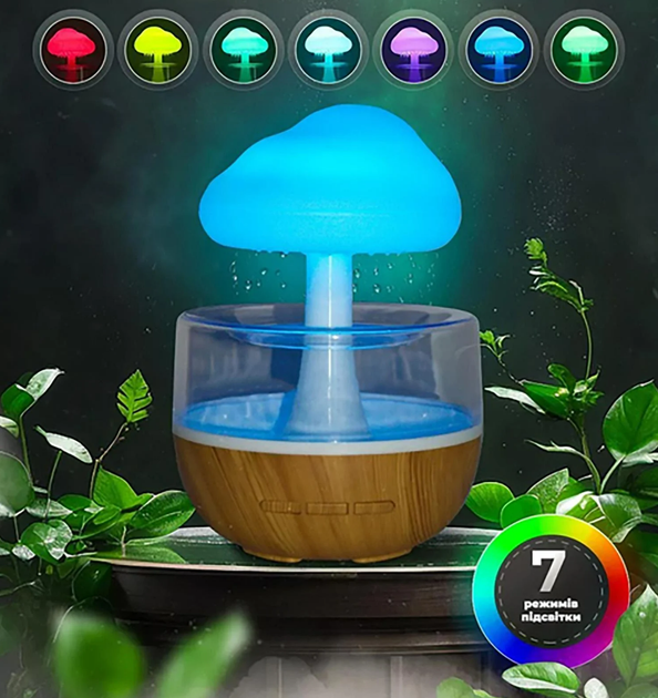 Зволожувач повітря Гриб з ефектом дощу / Ультразвуковий зволожувач повітря / Аромадифузор з підсвічуванням