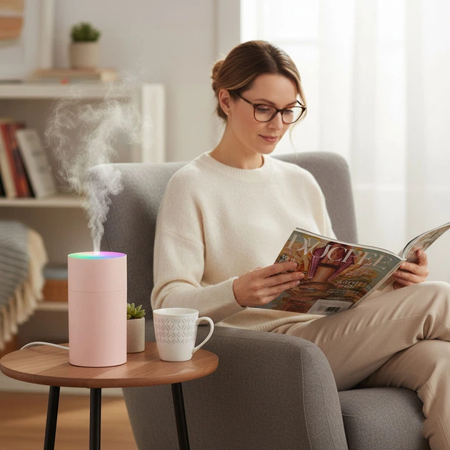 Зволожувач повітря USB з підсвічуванням 200 мл рожевий для офісу або спальні з тихим режимом роботи