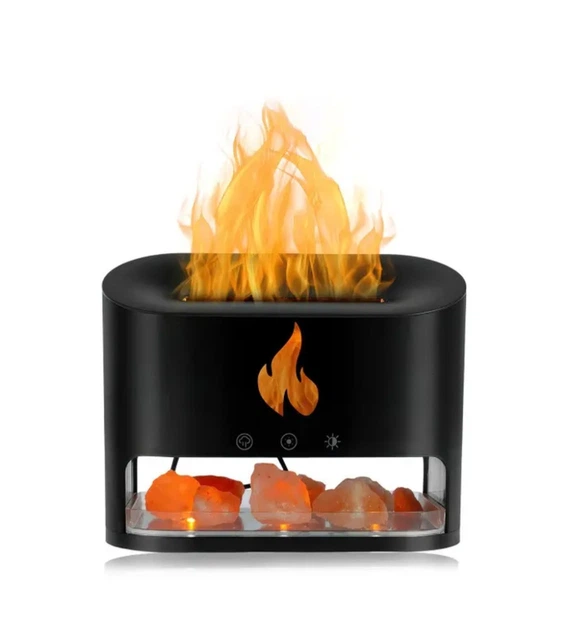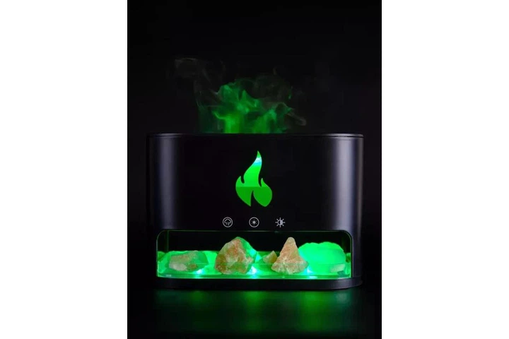 Зволожувач повітря Docsal Flame 3в1 з ультразвуковим зволоженням та соляним камінням. Чорний