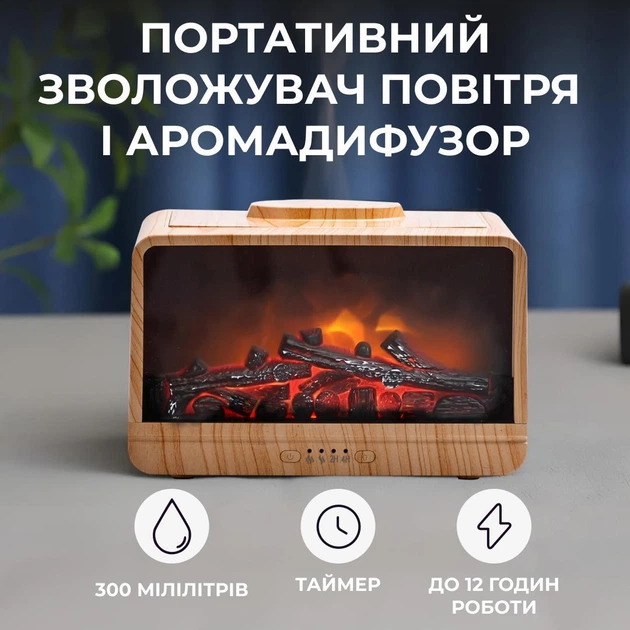 Портативний зволожувач повітря Happy Life Flame Fireplace Aroma Diffuser Wood аромадифузор для дому зволожувач у вигляді кам