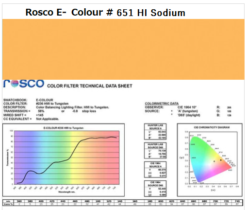 Фільтр Rosco E-Colour+ 651 HI Sodium Roll (66512) E-Color - це комплексна система європейських кольорових фільтрів Rosco для кіно - та відеовиробництва. E-Color включає в себе різні фільтри і матеріали для кольорокорекції, колірних ефектів, дифузії і відображення. Вони виробляються з використанням новітніх барвників і технологій склеювання, що забезпечує найвищий рівень надійності і продуктивності. Ці фільтри виробляються у відповідності з найвищими стандартами і новітніми засобами барвників і технологіями зв'язування. Rosco гарантує найвищий рівень надійності і продуктивності.