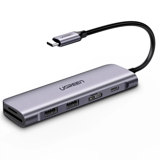 Хаб UGREEN USB-C to 2 Ports USB3.0-A Hub + HDMI + TF/SD with PD Power Supply (Space Gray)