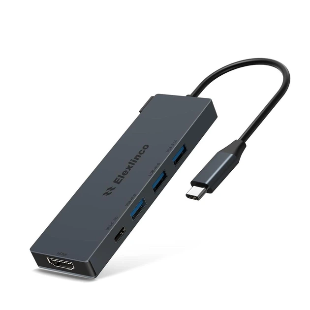Концентратор USB C Hub Dockteck 7 в 1 із 4K HDMI 100W PD 5 Гбіт/с 2 USB-A SD TF для MacBook Pro сірий.