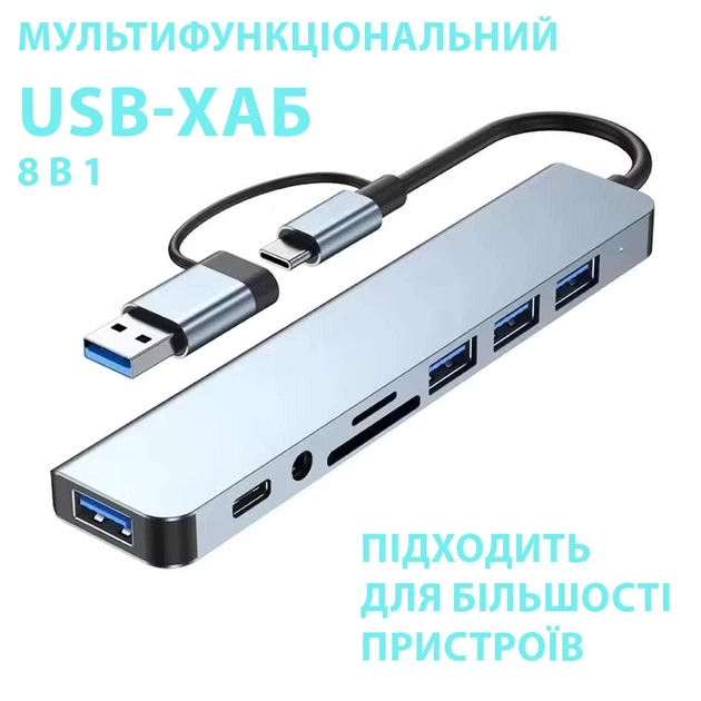 USB-хаб, Кардридер, адаптер мультифункціональний Type-C на USB SD TF для ноутбука, телефона, планшета (3082)