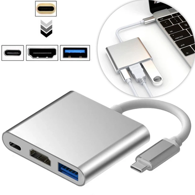 Перехідник адаптер 3в1 з Type-C на HDMI USB USB-C з підтримкою Full HD та заряджання пристроїв