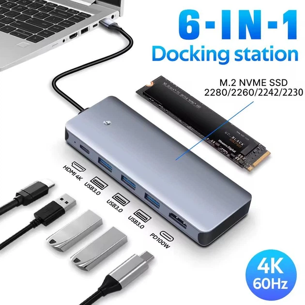 Док-станція Fenvi 6-IN-1 M.2 NVME SSD Case Docking Station USB C HUB USB C Docking Station ype-C to HDMI Adapter