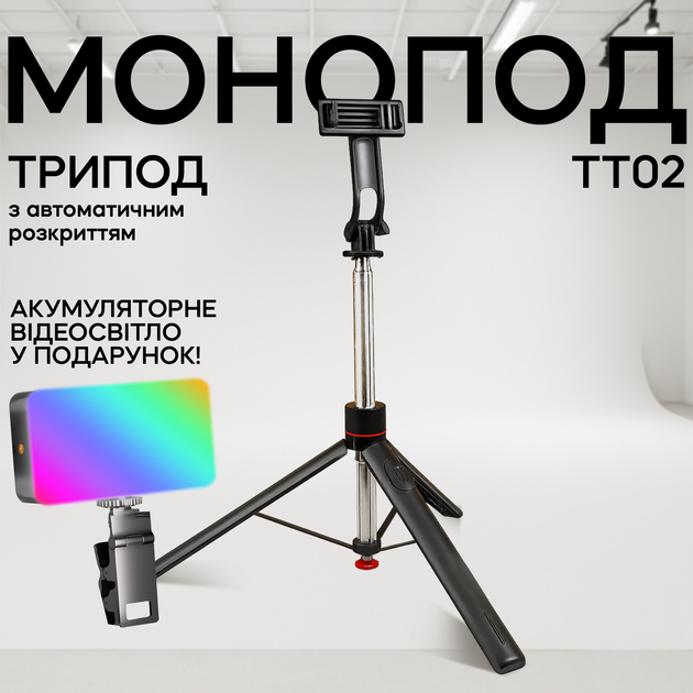 Набір блогера штатив для телефону 175 см з авторозкриттям ніжок і відеосвітлом RGB (3484-1)