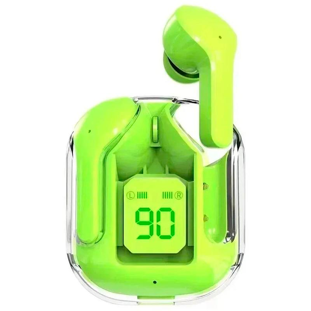 Бездротові навушники TWS T2 з прозорим зарядним кейсом вакуумні bluetooth 5.0 LED цифровий дисплей 517 Green