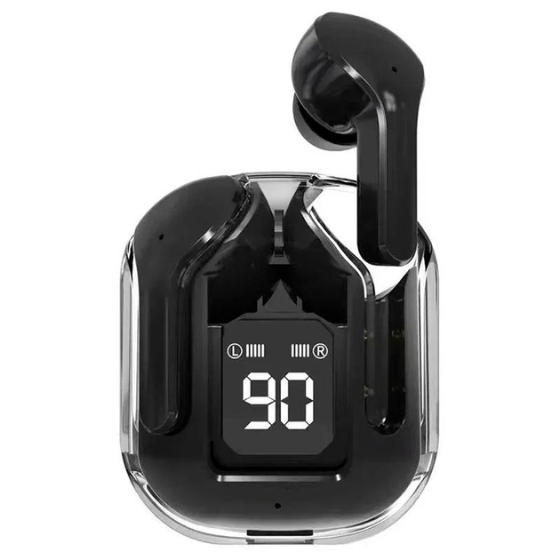 Бездротові навушники TWS T8 PRO з прозорим кейсом Вакуумний LED дисплей Bluetooth 5.3. Колір: чорний