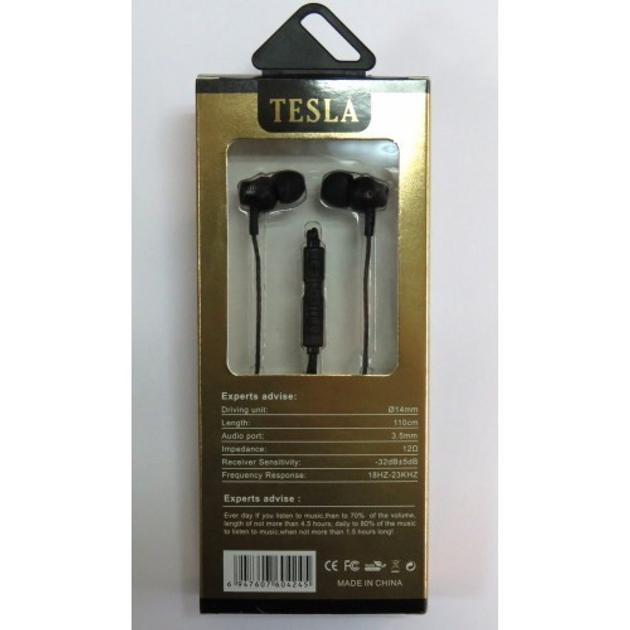 Вакуумні навушники Tesla A8 Black з мікрофоном