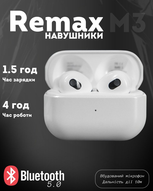 Безпровідні навушники Remax M3 з Bluetooth 5.0 та вбудованим мікрофоном White