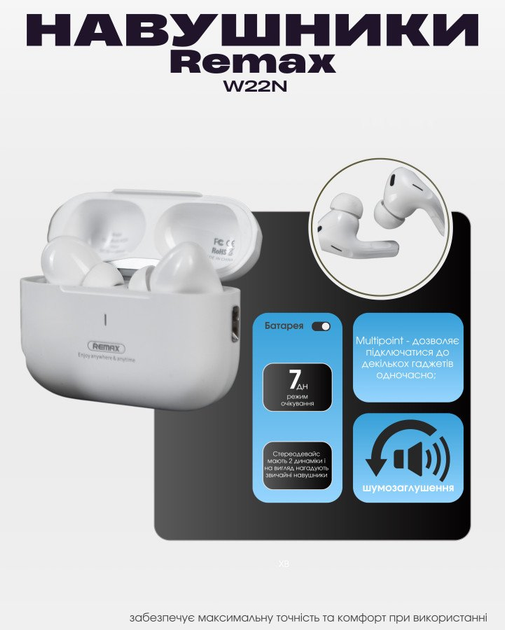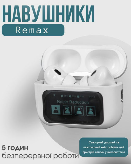 Бездротові навушники Remax W30N TWS з активним шумопоглинанням та сенсорним кейсом White