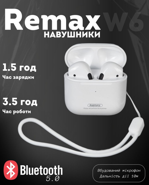 Безпровідні навушники REMAX W-6 ВТ3923 стильні та зручні навушники з якісним звуком Black