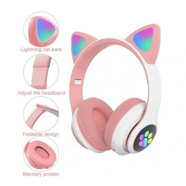 Бездротові навушники LED Рожевий з котячими вушками STN-28 (YU8SH1542)