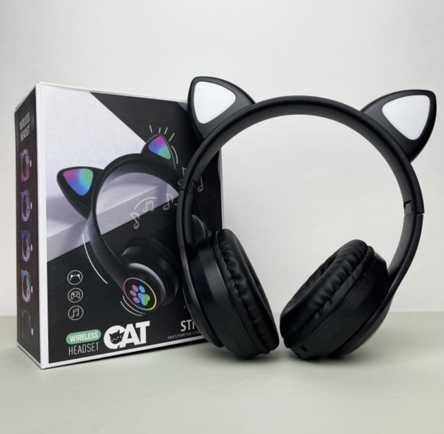 Bluetooth навушники з вушками бездротові bluetooth чорні дитячі навушники з підсвічуванням