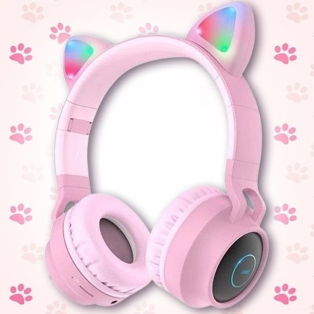 Бездротові навушники Hoco з вушками Cat Ear з LED RGB підсвіткою вушка кішки Bluetooth блютуз складні, Рожеві