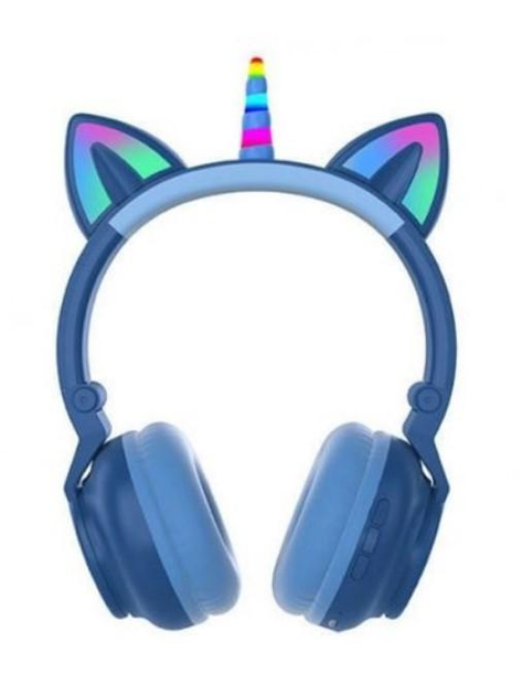 Навушники дитячі Bluetooth Cat STN-27 з підсвічуванням LED єдиноріг з котячими вушками сині