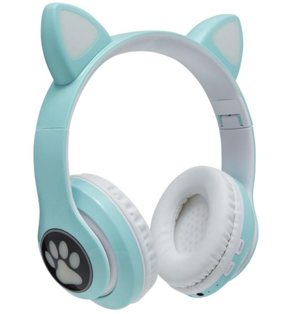 Навушники дитячі Cat Ear В39М підсвічування/FM-радіо/MicroSD/Bluetooth м'ятний