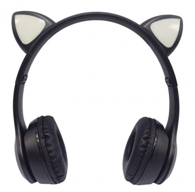 Навушники дитячі Bluetooth накладні Cat Ear P47M Гарнітура MP3 котячі вушка RGB Чорні