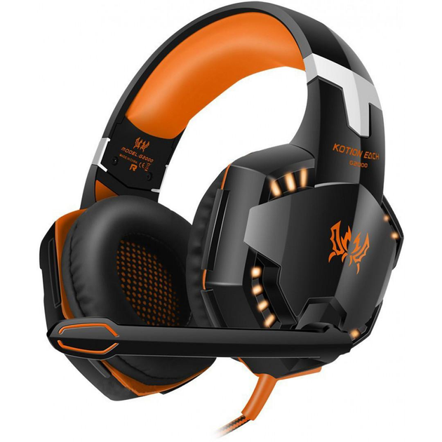 Ігрові геймерські навушники Kotion Each G2000 дротові з мікрофоном і підсвічуванням для ноутбука комп'ютера ПК помаранчево-ч