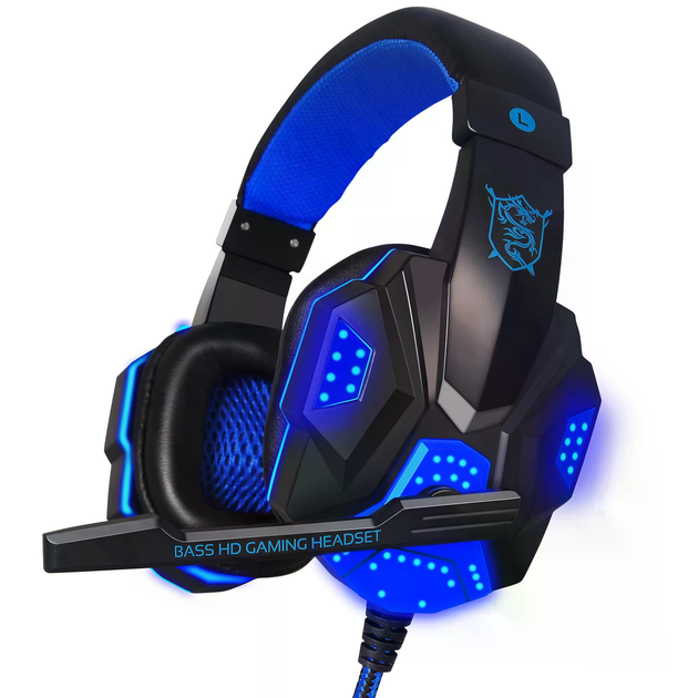 Ігрові геймерські навушники Kotion Each G2000 дротові з мікрофоном і підсвічуванням для ноутбука комп'ютера ПК чорно-синій