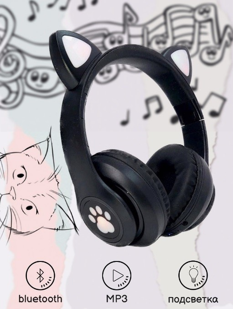 Бездротові дитячі Bluetooth навушники з вушками та підсвічуванням Cat-23M Чорний