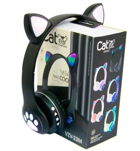 Бездротові дитячі Bluetooth навушники з котячими вушками та кольоровим підсвічуванням Cat VZV-23M (Чорні)