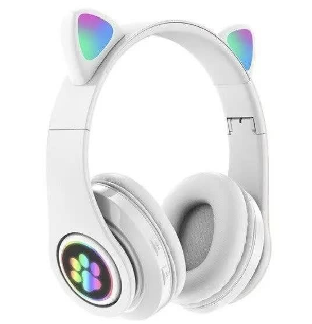 Бездротові навушники з котячими вушками В39М Білий/ Накладна Bluetooth гарнітура з LED підсвічуванням