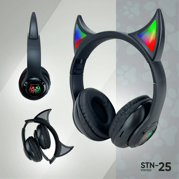 Бездротові навушники з котячими вушками CAT STN-25 Bluetooth, Чорний