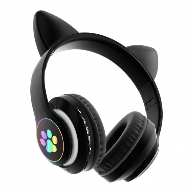 Бездротові навушники з вушками з мікрофоном Cat Ear світяться вушка і лапки кішки Bluetooth складні (Чорні)