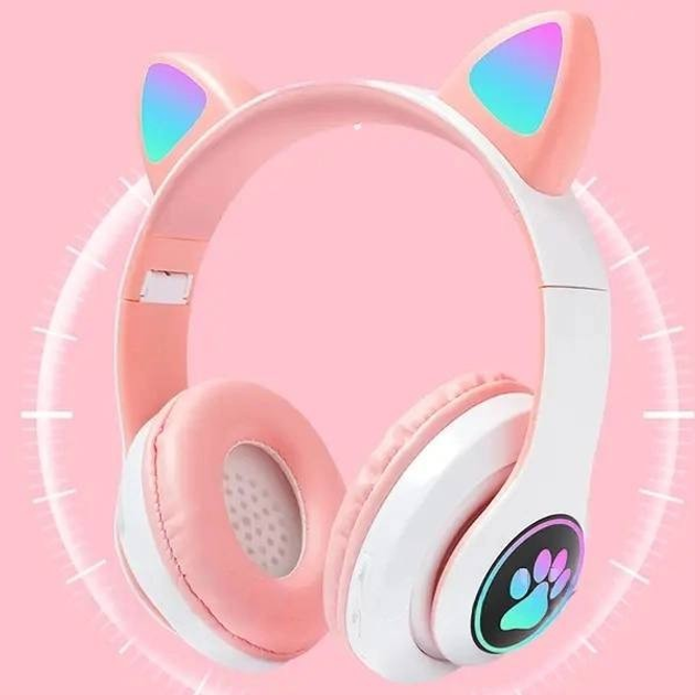 Бездротові навушники рожеві з котячими вушками Cat VZV-23M дитячі музичні блютуз Bluetooth навушники накладні