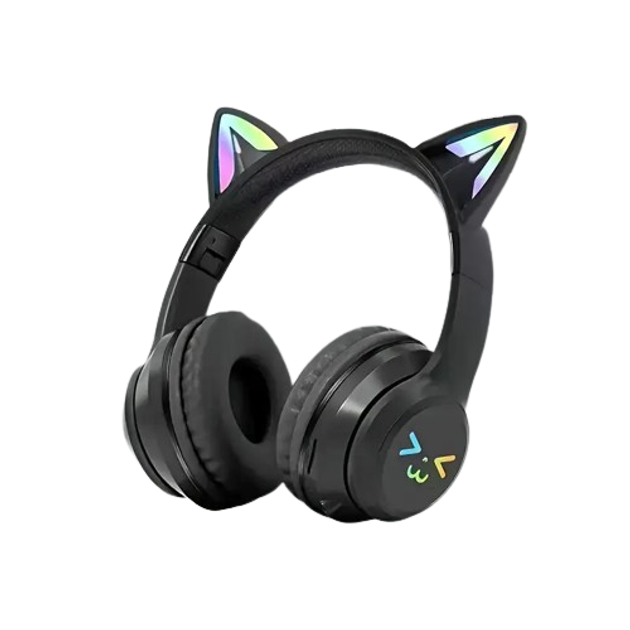 Дитячі бездротові навушники CATEAR BT612 з вушками та RGB-підсвіткою Bluetooth 5.3 MicroSD AUX чорні