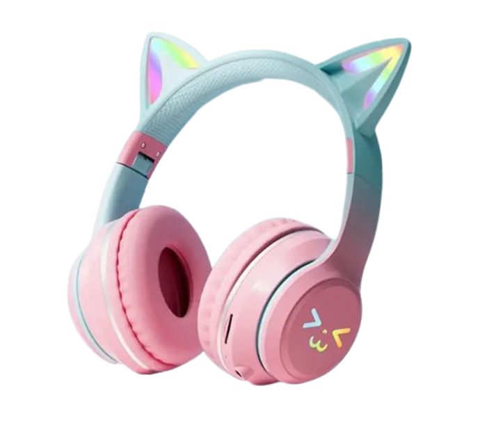 Дитячі бездротові навушники CATEAR BT612 з вушками та RGB-підсвіткою Bluetooth 5.3 MicroSD AUX Синьо-рожеві