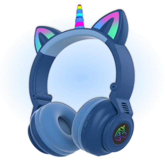 Бездротові складні навушники Bluetooth единоріг з вушками з підсвіткою та мікрофоном, Сині (ARTSTZ7NBlue)