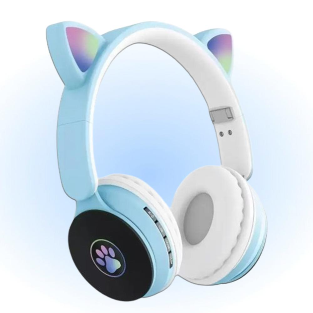 Бездротові складні навушники Bluetooth з вушками з підсвіткою та мікрофоном, Блакитні (ART7ST7MBlue)