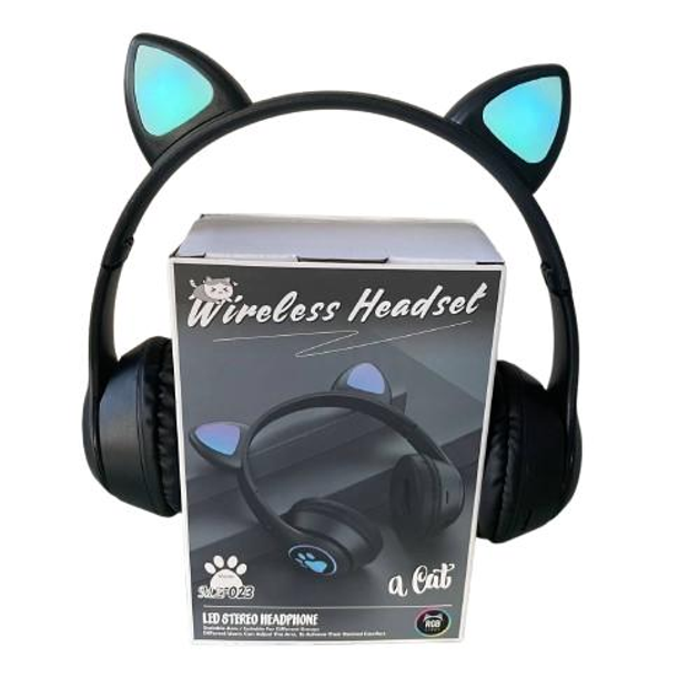 Бездротові Bluetooth навушники з котячими вушками і LED підсвічуванням Cat VZV-23M Чорні