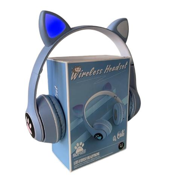 Бездротові Bluetooth навушники з котячими вушками і LED підсвічуванням Cat VZV-23M Сині