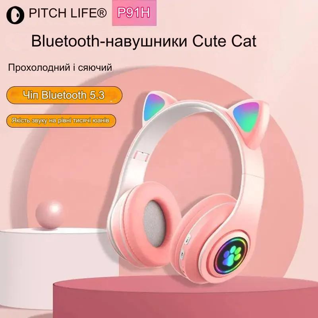 Бездротові Bluetooth навушники CAT з котячими вушками і LED підсвічуванням MZ-023 Рожеві
