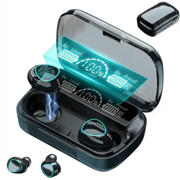 Бездротові bluetooth вакуумні навушники M10 + LED дисплей з індикатором заряду Чорний