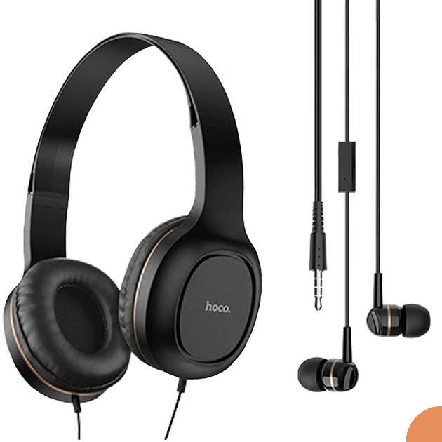 Комплект дротяних накладних та вакуумних навушників HOCO W24+ з мікрофоном
