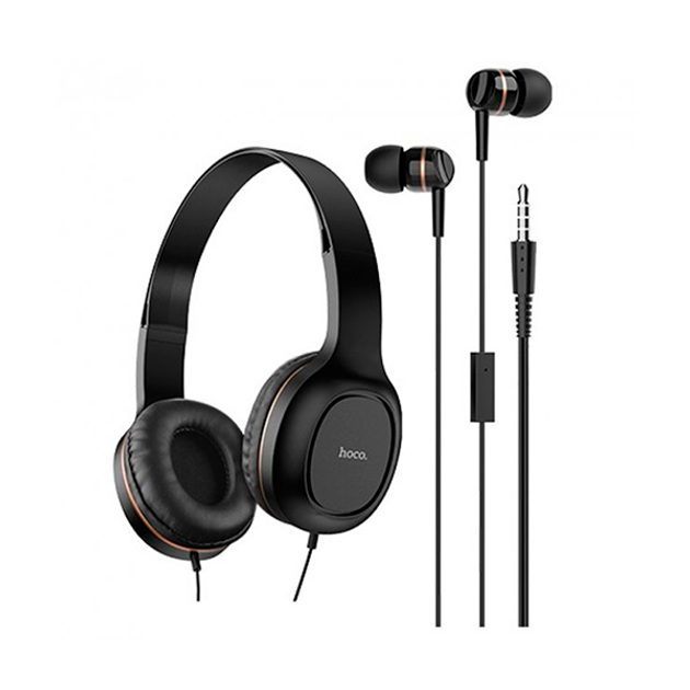 Комплект дротових навушників Hoco W24 Навушники накладні + вакуумні гарнітура Чорні